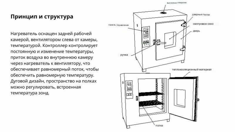 Два LED дисплея позволяют контролировать температуру и время нагрева.