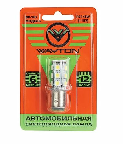 - Светодиодная лампа WAYTON BP187 12V(P21/5W/1157) блистер 1шт