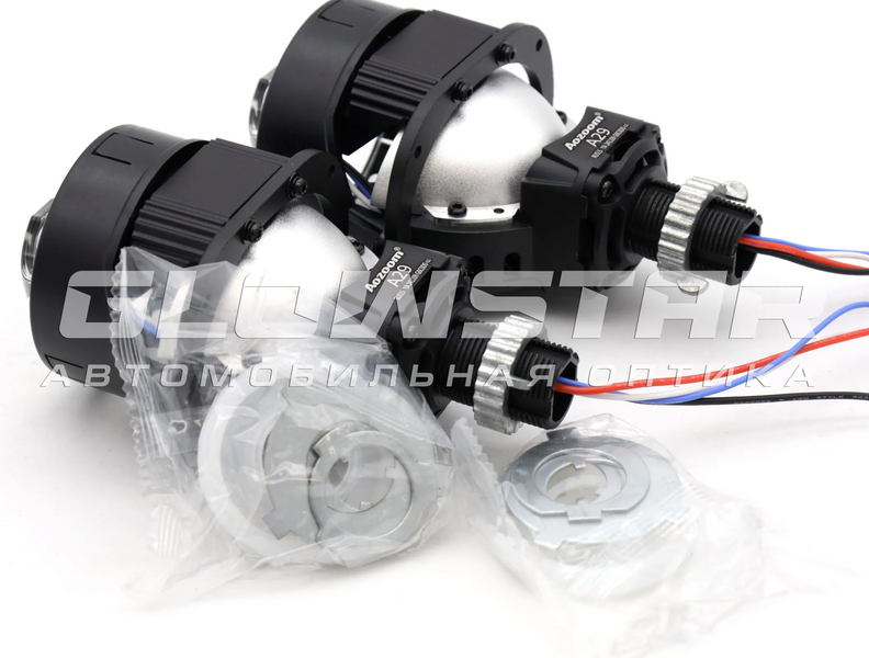 - Светодиодная BI-LED линза AOZOOM A29 2025 2.5 дюйма, 4 чипа, 5500K, 12V, 37W/64W, съемное гаечное крепление (комплект, 2шт) (A29)