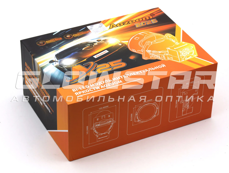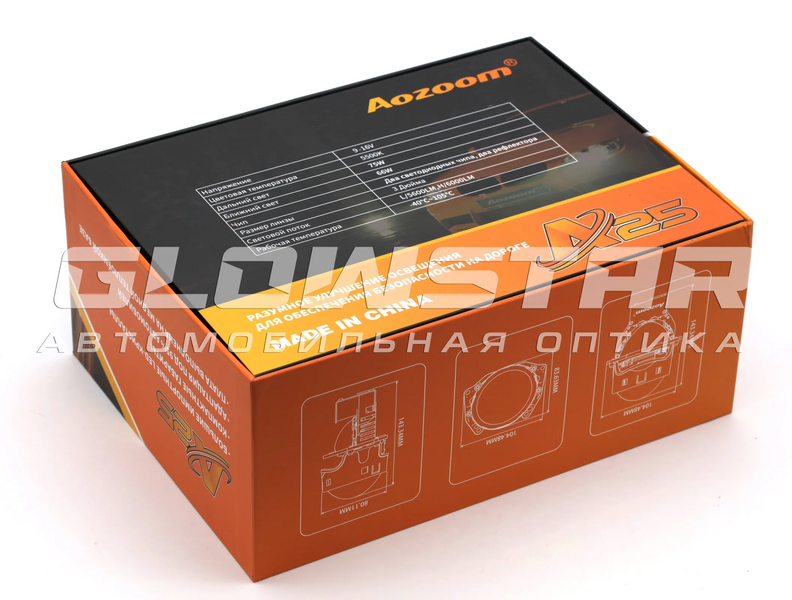 - Светодиодная BI-LED линза AOZOOM A25 2025 3.0 дюйма, 2 чипа, 5500K, 12V, 66W/75W, крепление 3R (комплект, 2шт) (A25)