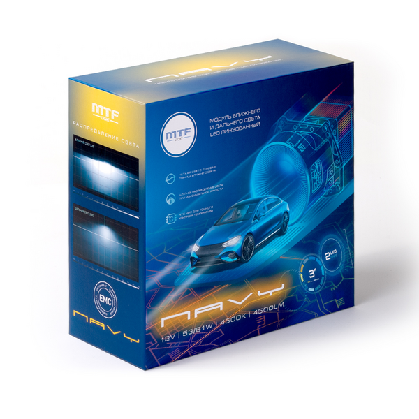 - Светодиодная BI-LED линза MTF серия NAVI, 12В, 53/61Вт, 4500К, 3" (HN61K4)