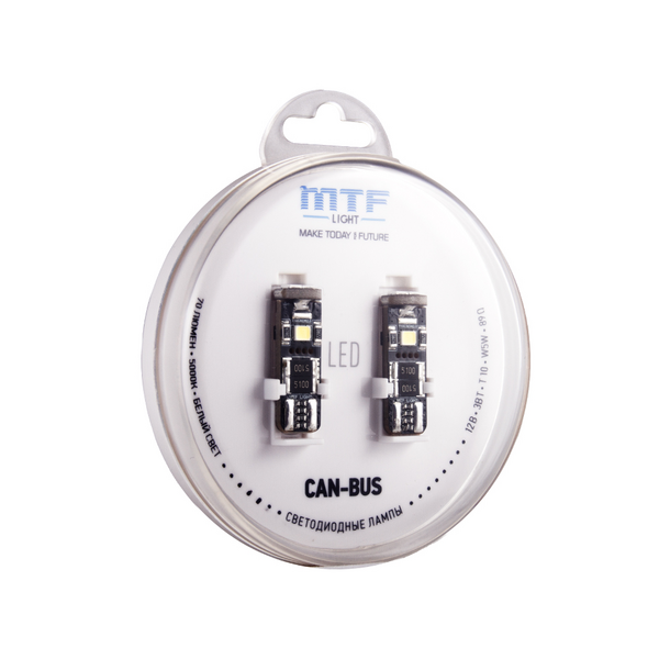 Светодиодная лампа MTF Light серия CAN-BUS, W5W/T10, 12В, 3Вт, 89Om, 5000К(белый свет), 70 лм, 2шт.