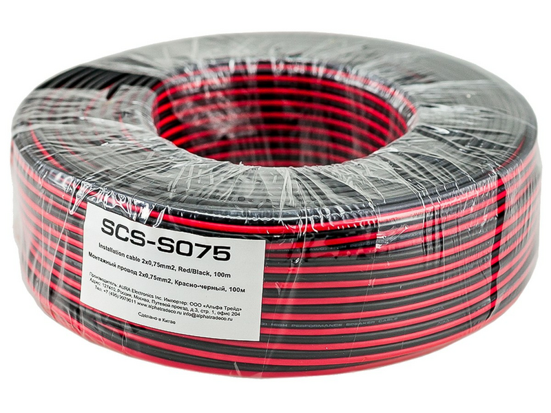 - Акустический кабель Aura SCS-S075 акустический/монтажный, черный/красный, 0.75мм2, 100 м.