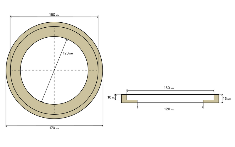 - Внутренний диаметр (потай): 160 мм