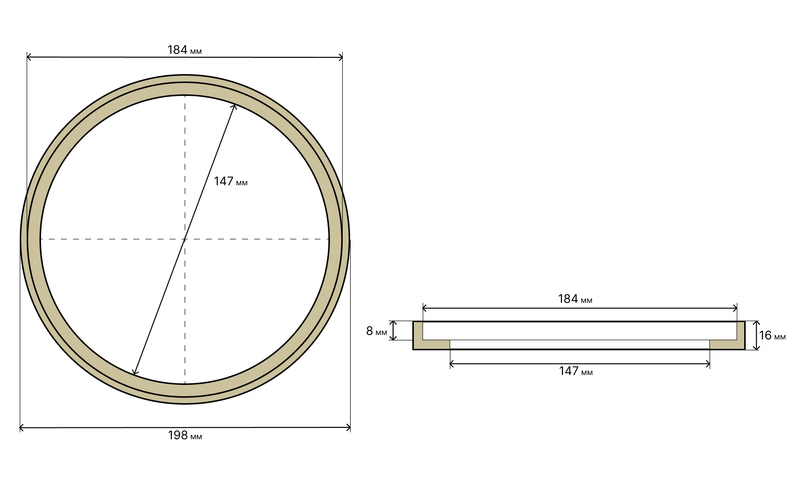 - Внутренний диаметр (потай): 184 мм