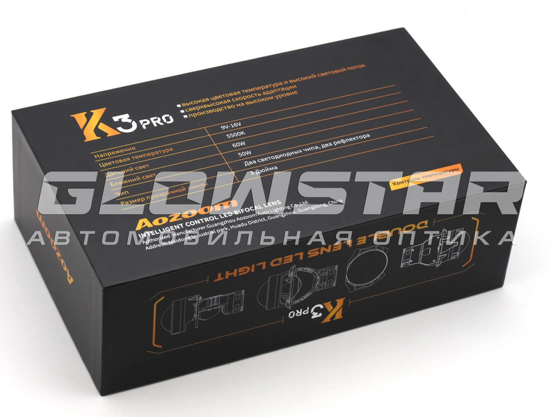 - Светодиодная BI-LED линза AOZOOM Билед модули Aozoom K3 Pro 2025 Dragon Knight New (новое поколение) 3.0 дюйма, 2 чипа, 5500K, 12V, 50W/60W, крепление 3R (комплект, 2шт) (K3Pro)