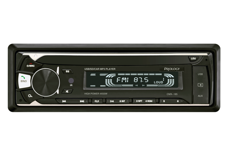 PROLOGY CMX-185 — FM SD/USB ресивер с Bluetooth, это автомагнитола стандартного размера 1DIN, которая обеспечивает прием радиостанций в диапазоне FM, воспроизведение медиафайлов, записанных на карты памяти USB / microSD, передачу звука с внешних источников, а также управление мобильным телефоном через интерфейс Bluetooth (ver. 4,2). Кроме того, устройством можно управлять с помощью приложения, установленного на Ваш смартфон с операционной системой Android.*