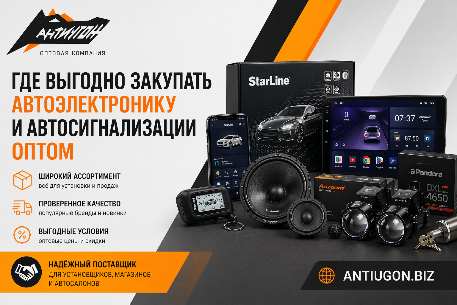 Оптовый поставщик автоэлектроники и автосигнализаций АНТИУГОН